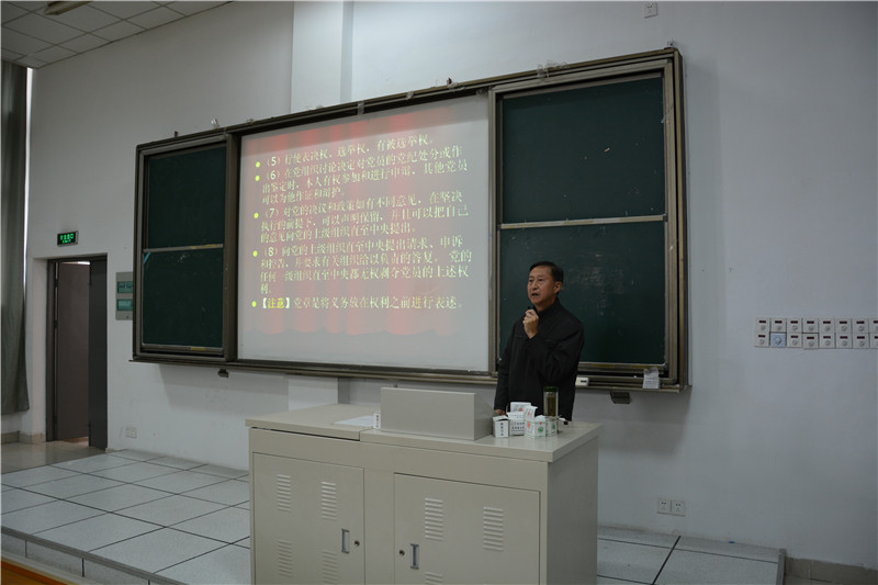 教坛上,时常为同学们做讲座。讲课是由一句“当年”开始的,康老师通过回忆当年的入党经历展开了对党支部组织生活的介绍。党支部的组织生活大致分为党员教育、基本理论学习、扩大民主、批评、发展党员、党员处理、有益活动七个方向。随后,康老师又根据自己入党几十年来对党的认识和反思来讲述党员的权利与义务。他指出:权利的“利”是党员的个人利益,而不是代表控制力与威慑力的“力”;义务则是在政治上、法律上、道义上应该尽到的责任。权利和义务是天平的两端,应该平衡。没有义务无从谈及权利,不尽义务也无权享受权利;但若没有权利,则无法说服人们去执行义务,因此两者是对等的。康老师还提及,那些年,入党意味着一个人政治生活的最高成就,即便今天,入党也具有意义,但党员意味着特殊的责任而非特殊的地位。一言以蔽之,党员的最根本义务是全心全意为人民服务。 最后,康老师穿插了亲身经历的讲课在大家热烈的掌声中落下帷幕,此次培训班也由此进入了尾声。